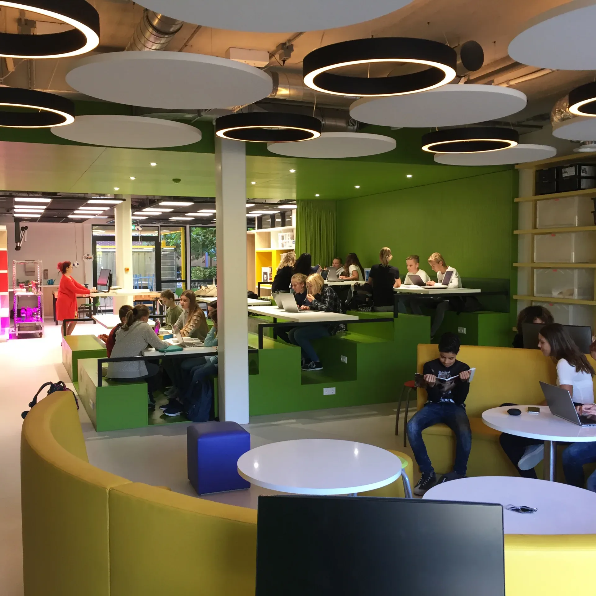 Ook voor het Ir. Lely Lyceum in Amsterdam hebben wij een van de grootste Technasium ruimte mogen realiseren. In deze ruimte kunnen kinderen van het voorgezet onderwijs op een creatieve manier het vak techniek leren. Een inspirerende ruimte met frisse en mooie kleuren.